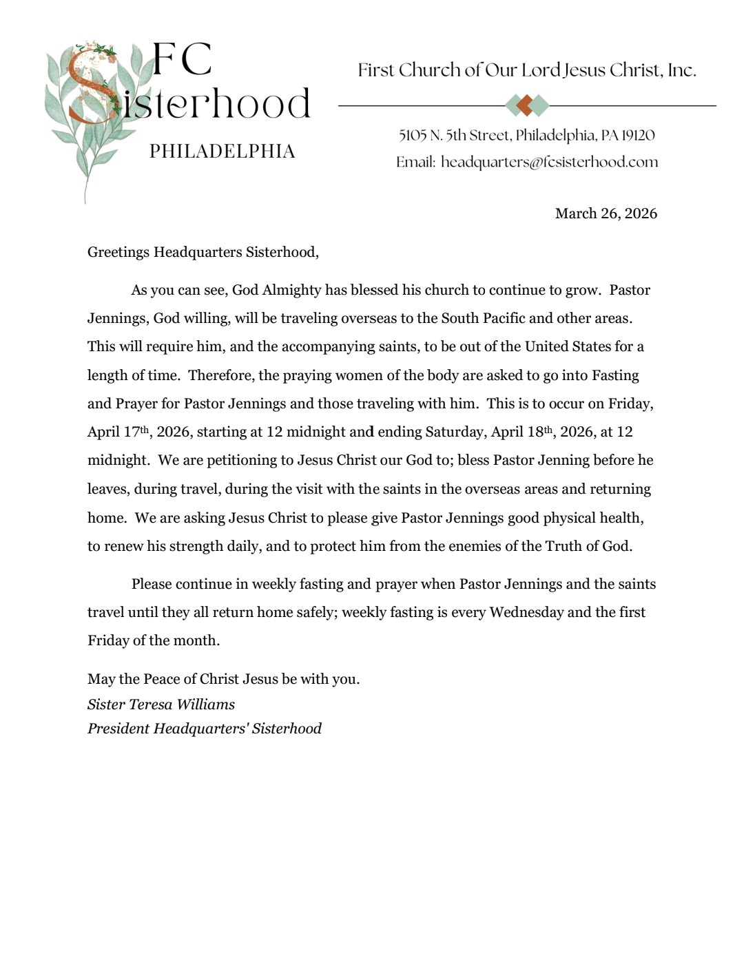 Auxiliary Events Events Menu U.S. EventsInternational EventsConvocationsRegional ConventionsHeadquarters (prayer nights)BaptismAuxiliary EventsBranch Temples: Updates For Baptism / Please Bring A change of clothes appropriate for baptism (no see-through clothing; no shorts for men/no shorts or pants for women) and two towels Have Question? Contact The First Church Baptism Team baptism@truthofgod.com & Phone: 1-888-231-2201 (press #1) Auxiliary Events U.S. Oceania Yearly Baptism Totals Baptized 0 In 2025 Baptized 0 In 2024 Baptized 0 In 2023 Baptized 0 In 2022 Acts 2:38 – “Then Peter said unto them, Repent, and be baptized every one of you in the name of Jesus Christ for the remission of sins, and ye shall receive the gift of the Holy Ghost.”