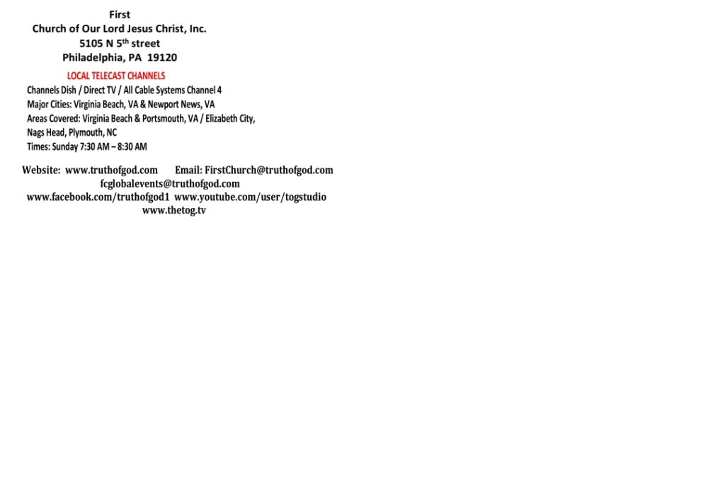 Richmond, VA / New Church LocationScheduled Events Previous Post Jacksonville, Florida - March 21 - 22, 2026 Next Post 4th Canadian Holy Convocation